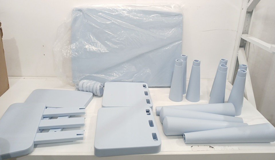 This item is missing one of its chair's legs so there is only enough material to assemble one chair and one table