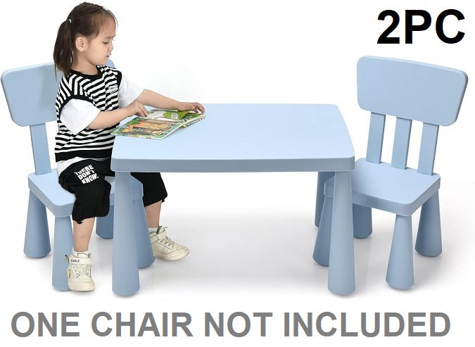2PC Costway Plastic Kids Table and Chairs Set - 110lbs cap - Blue
