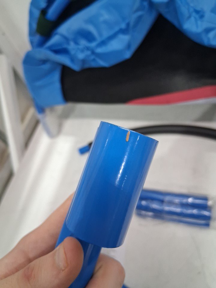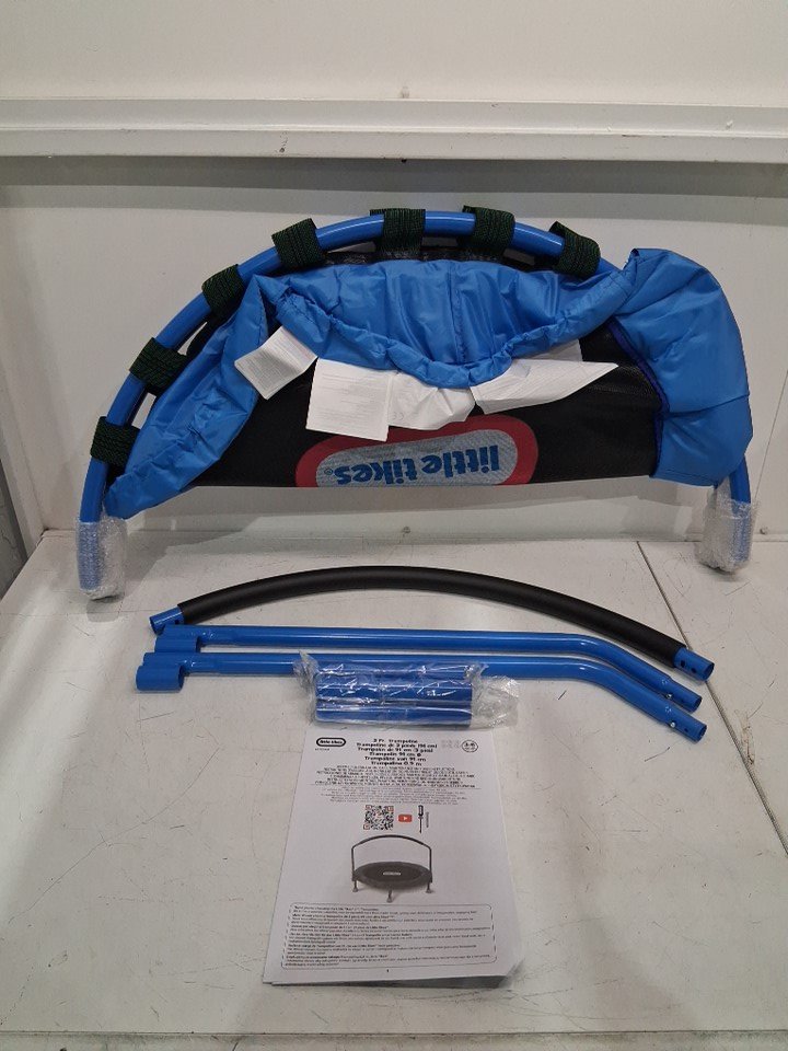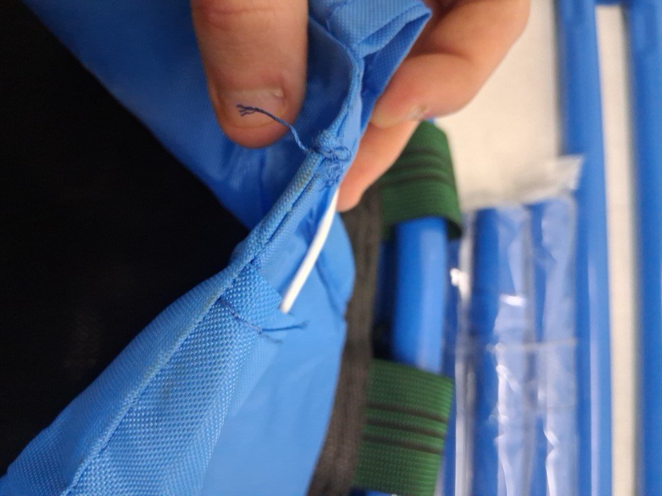 One spot on the trampoline's fabric has a faint scuff mark and two of the poles have a very small pain chip/rusting from shipping/handling.
