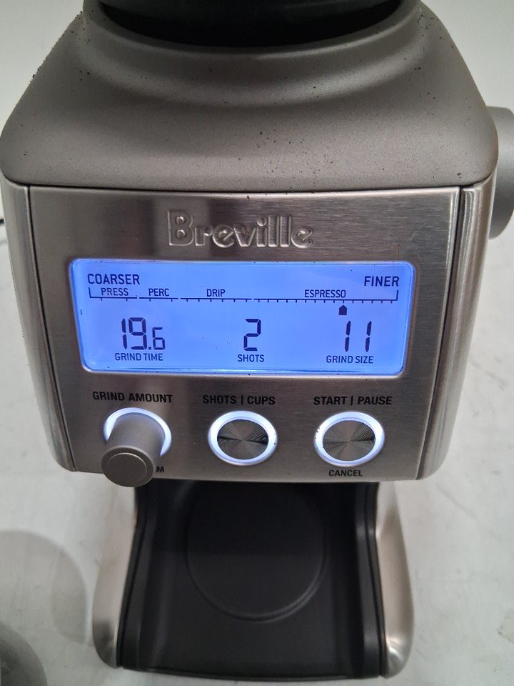 Tested for power, working. Signs of light use, coffee grounds inside hopper/grinder