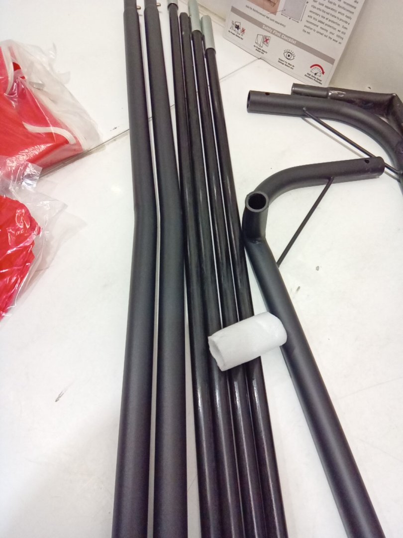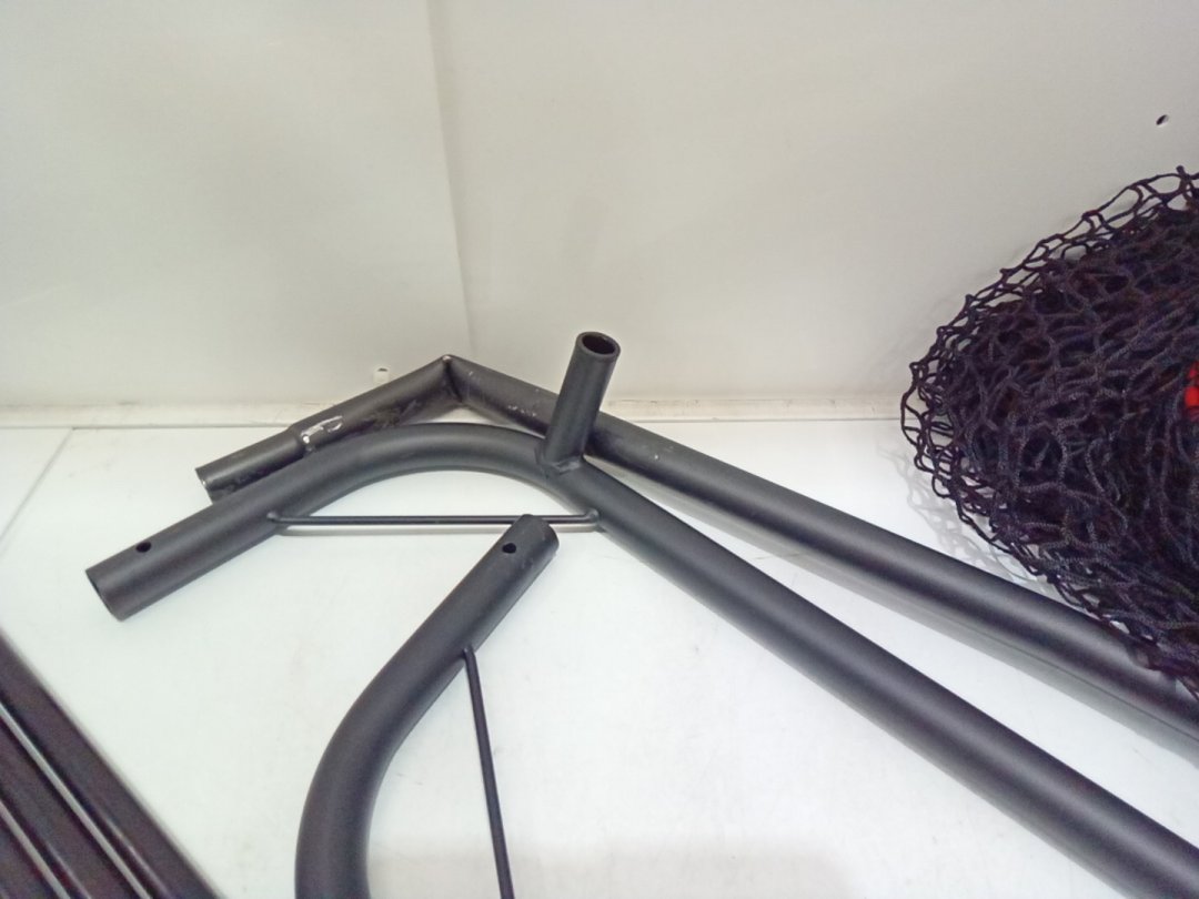 scuff marks and light scratches on the post suggests prior use. one of the middle bars of the bottom has been damaged during transport or misuse and may not be usable. net will have to be made more narrow using the remaining 2 bars. Please see photos.