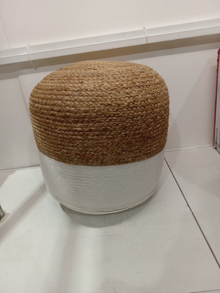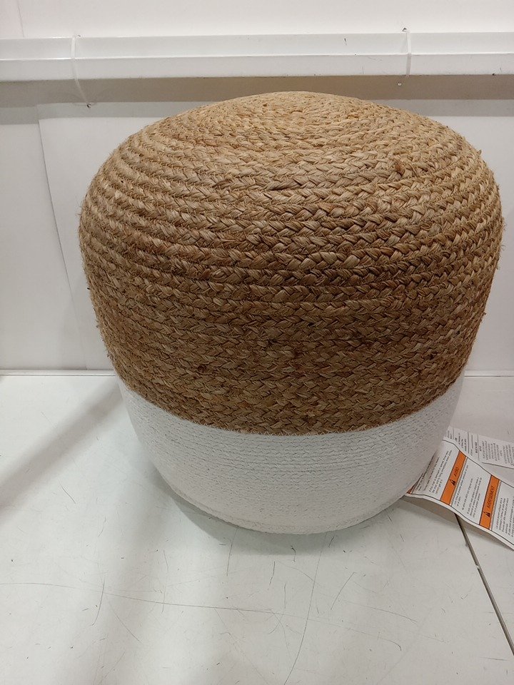 Signature Design by Ashley Sweed Valley Pouf, 20.5" - Natural/White (MODEL: A1000420)
