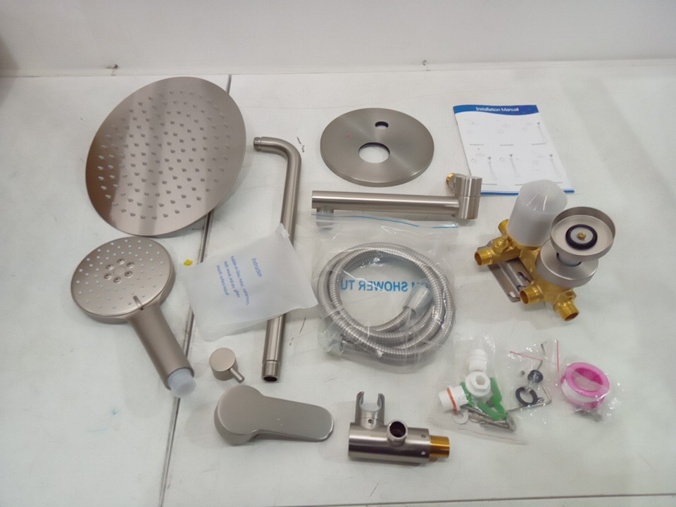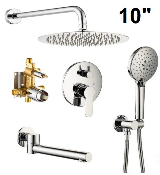 Single-Handle 3-Spray Round High Pressure Shower System with 10 in. Shower Head and Tub Spout - chrome - (model:w96203bn-10)