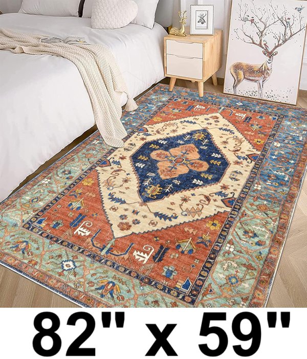 Bsmathom Area Rug Vintage Boho - 82" x 59" - Retro Red