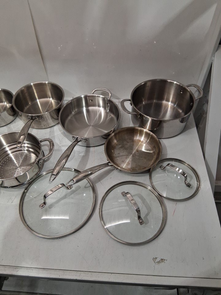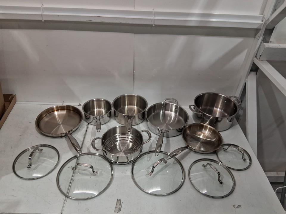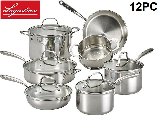 12PC LAGOSTINA FORTE TRI-PLY Stainless Steel Multi Clad Glass Lid Cookware Set - Silver (Model: Q939SC64)
