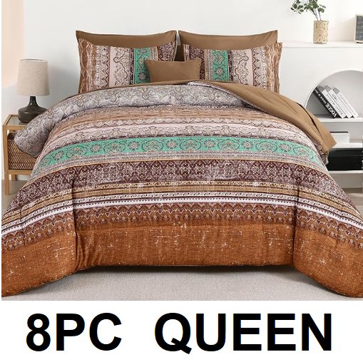 8pc Boho Comforter Set - queen - Bohemian Striped