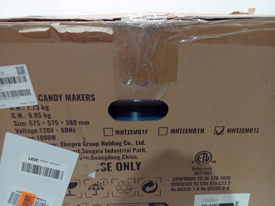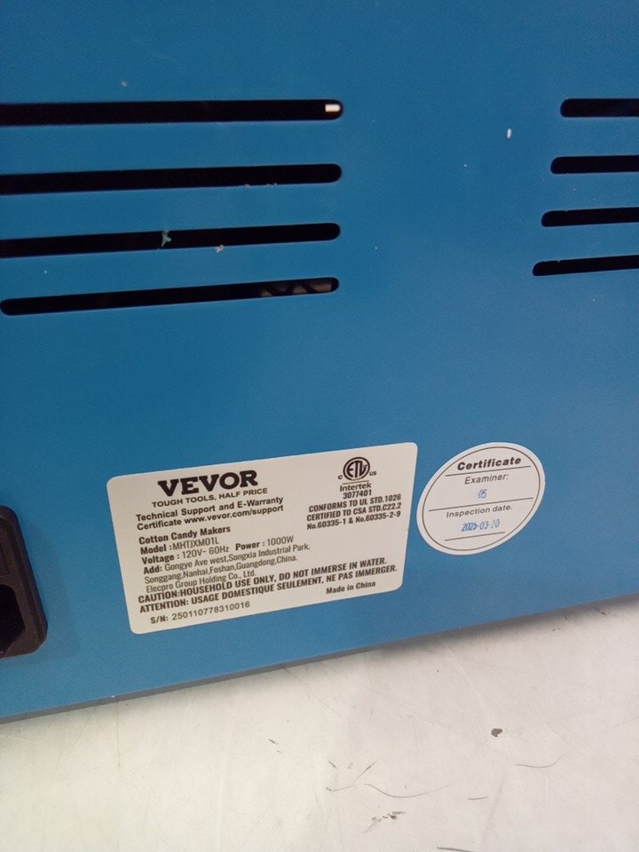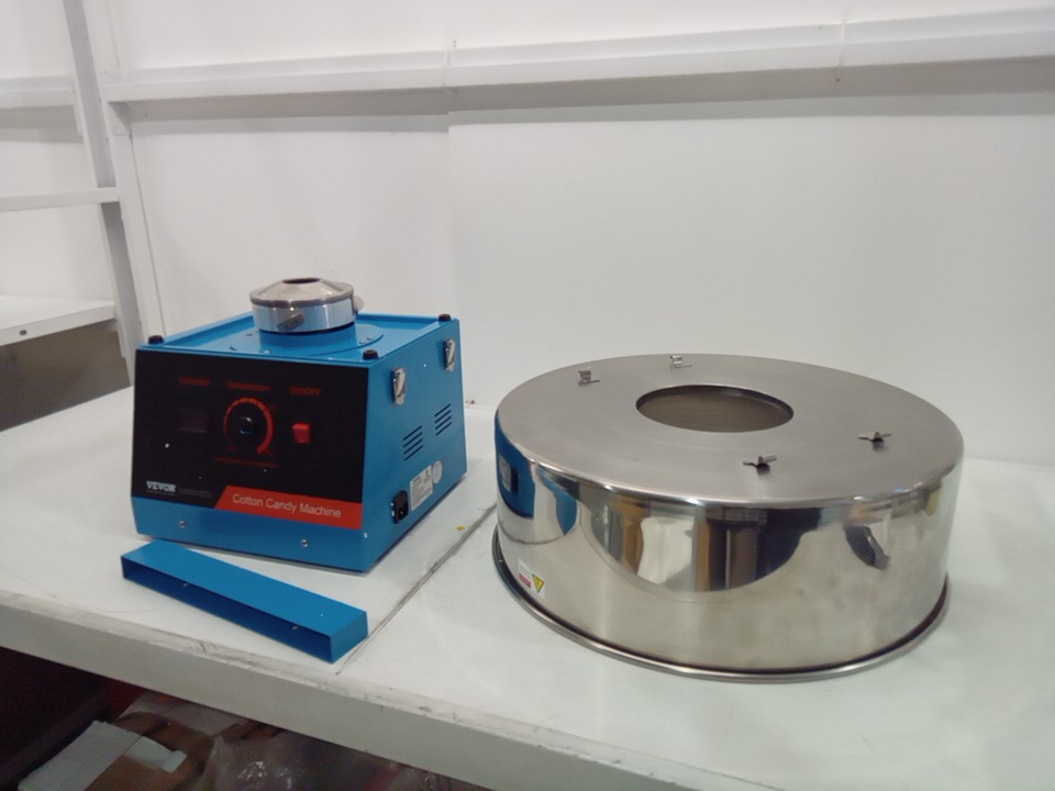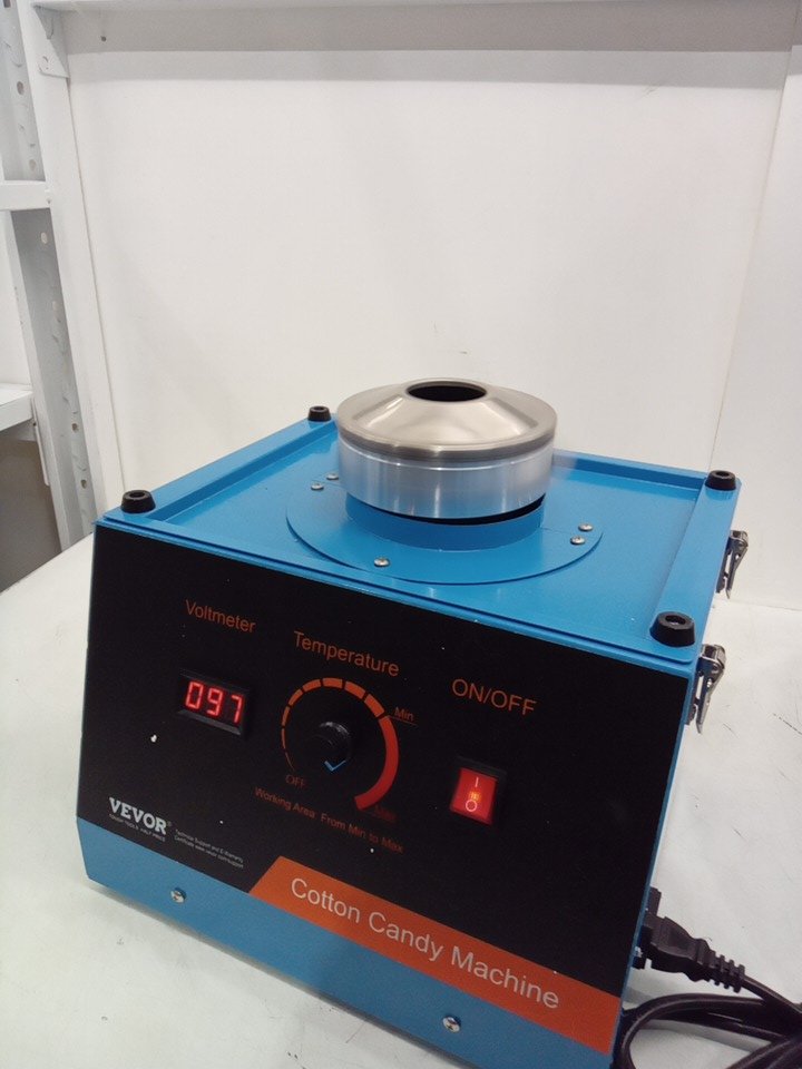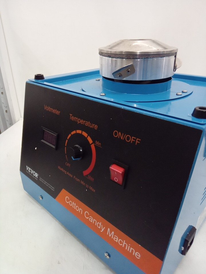 product was tested for power only, product was discovered to still have cotton candy crystals inside, this can be cleaned, we also found the product was missing the lid, the manual, and the scoop, please see photos.