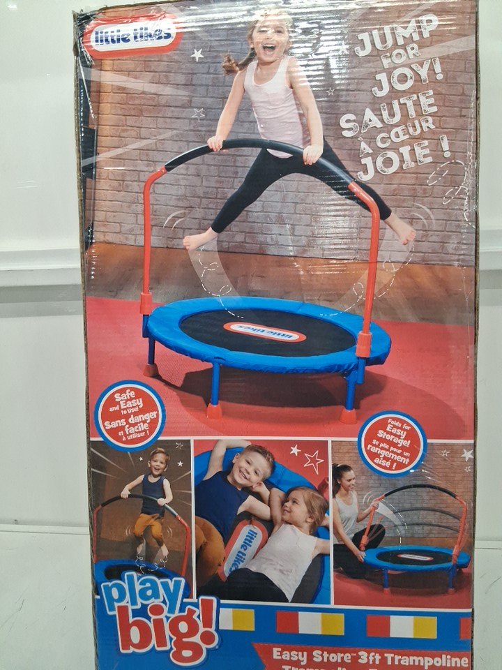 LITTLE TIKES Play Big EASY-STORE KIDS TRAMPOLINE - 3FT - MAX WEIGHT 55LBS - BLUE/MULTICOLOUR (MODEL: 642265PC)