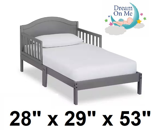 dream on me sydney steel toddler bed with safety rails 28" x 29" x53" - stormy grey (model:647)