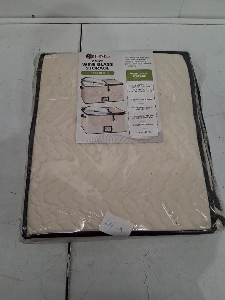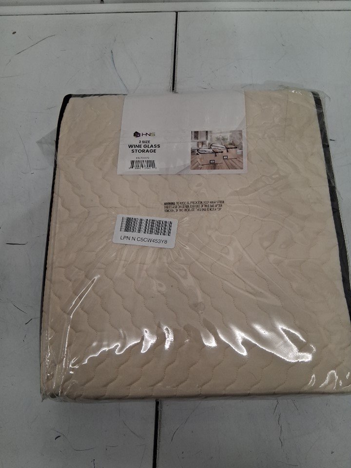 2pk holdn' storage Quilted Microfiber red Wine Glass Storage Box with Dividers - 18.5" x 13.7" x 10" - cream/brown
