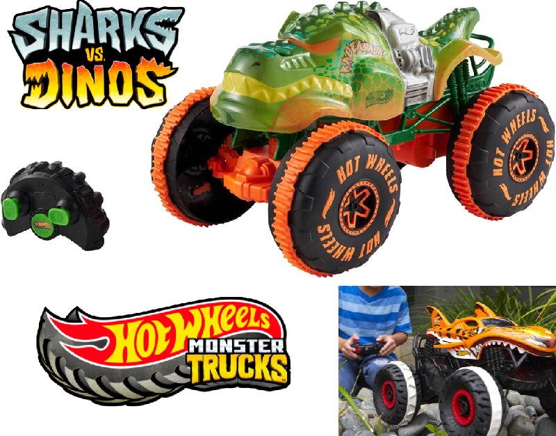 hot wheels sharks vs dinos Monster Trucks Remote-Control Toy Vehicle - green (model:‎JBH03)