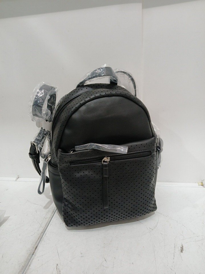 Women's Time and Tru Faux Leather Convertible Backpack / Handbag - 12L - Black