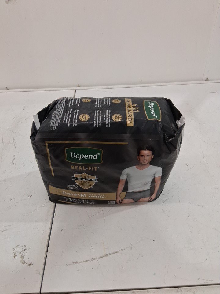 14PK MEN'S DEPEND REAL FIT UNDERWEAR - MAXIMUM ABSORBENCY - SMALL/MEDIUM - GREY