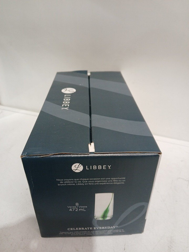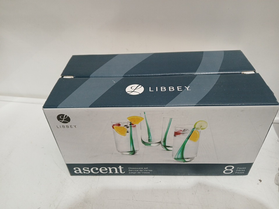 8PK LIBBEY ASCENT COLLECTION GLASSWARE SET - 16 OZ - GREEN SPLASH RIBBON