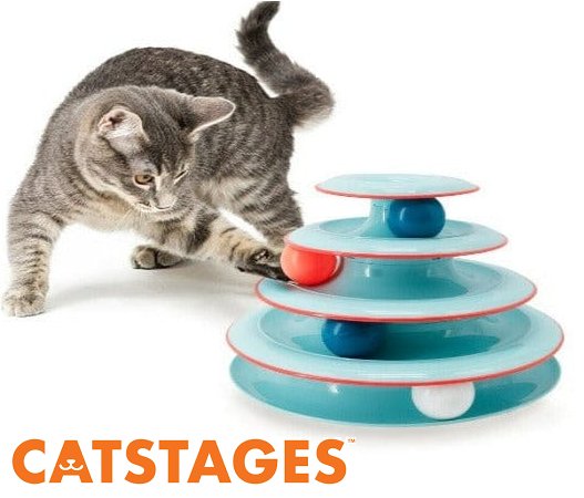 petstages chase meowtain interactive-tier cat track toy with no-slip base - Sky Blue (Model: 68016)