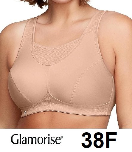 WOMEN'S GLAMORISE No Bounce Plus Size Camisole Wirefree Back Close Sports Bra- 38f -CAFE