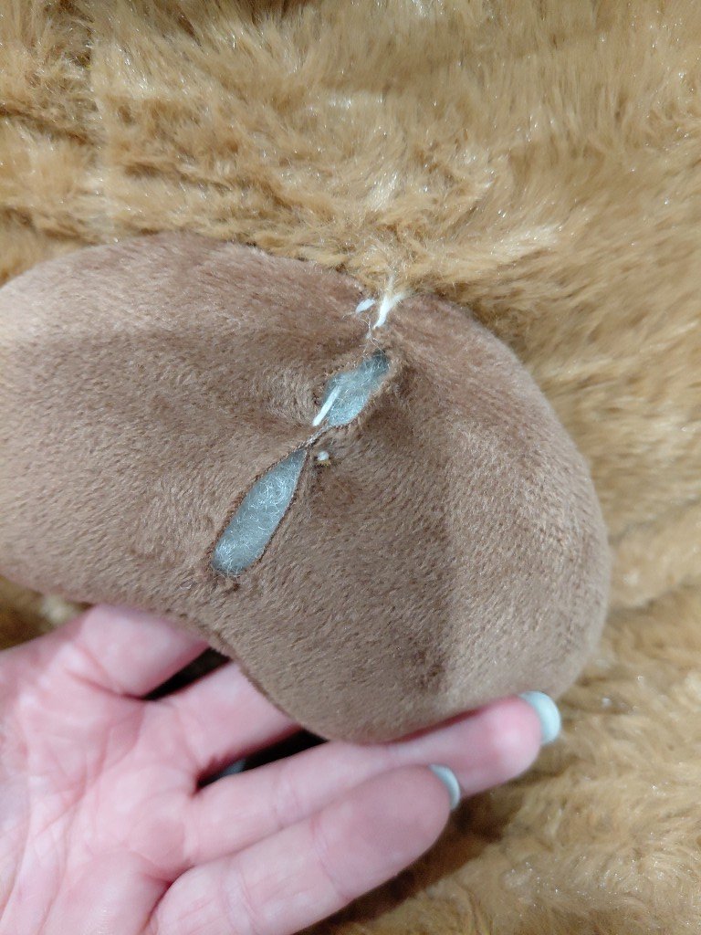 Love heart is slightly ripped, may be able to be re-stitched (see photo)