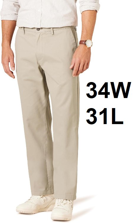 MEN'S AMAZON essentials Classic-fit Wrinkle-Resistant Flat-Front Chino Pant - 34w x 31L - khaki