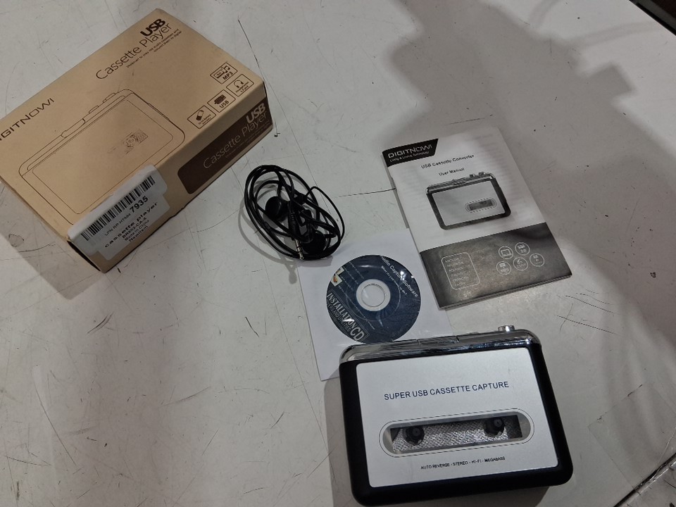 DIGITNOW Portable USB Cassette Player Compatible with Laptop and Personal Computer, Converts Portable Cassette to MP3 Format- black/white