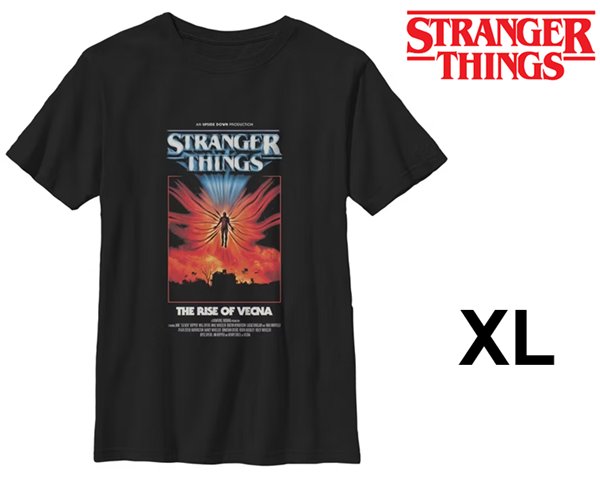 Boys Stranger Things The Rise Of Vecna Retro Poster T Shirt - EXTRA LARGE - BLACK/MULTICOLOURED