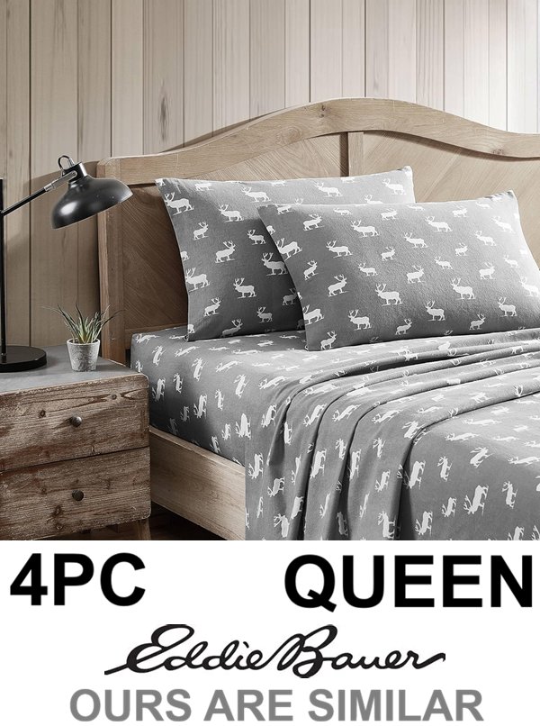 4PC EDDIE BAUER FLANNEL COLLECTION COTTON BED SHEET SET - QUEEN - ELK GROVE