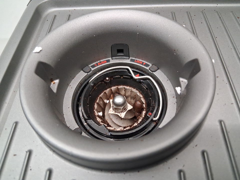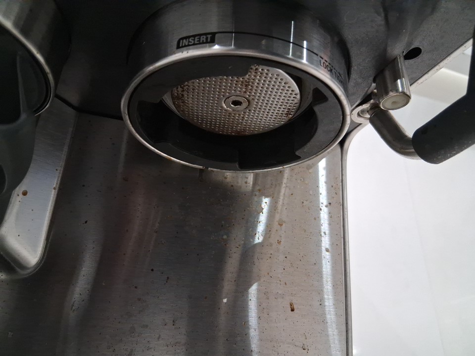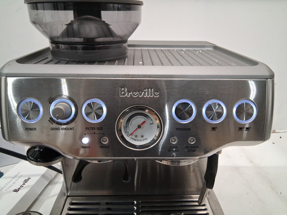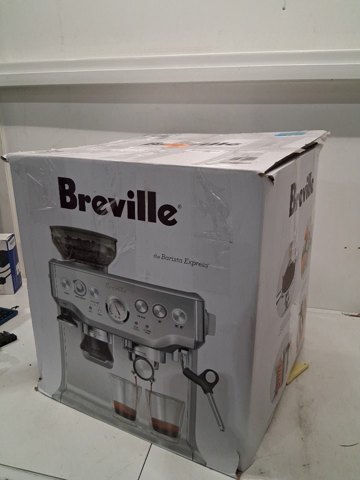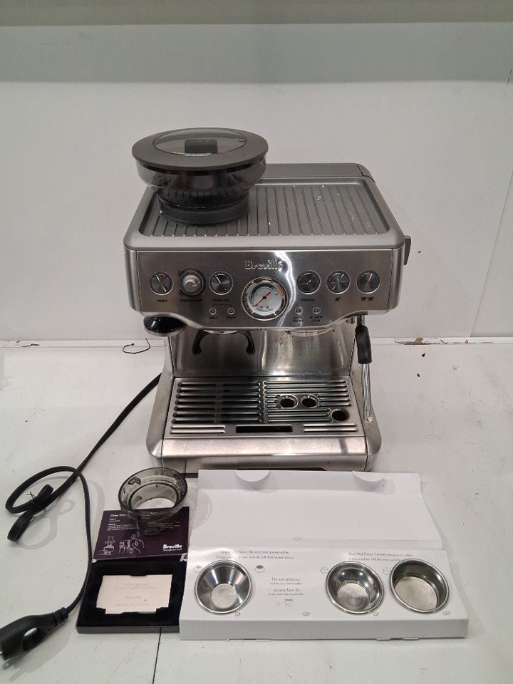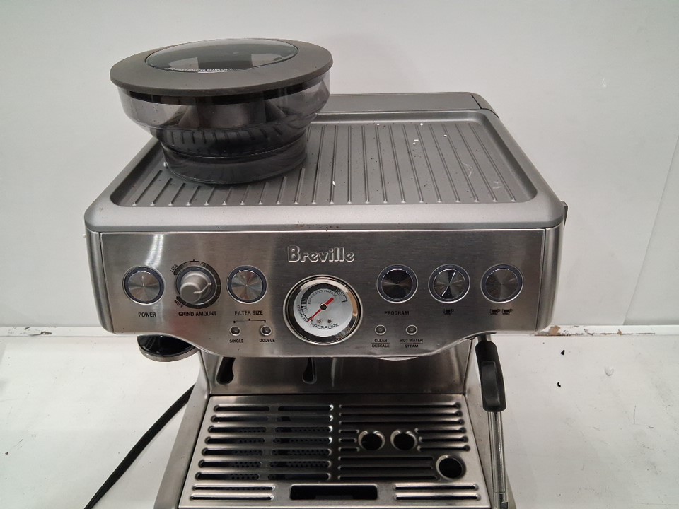 + Missing portafilter + + The drip tray is cracked and will need to be replaced + + Tested for basic power and grind function +