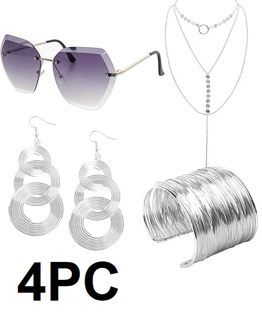 4pc fumwase 70s disco accessories for party, cosplay - Silver/smoke/purple