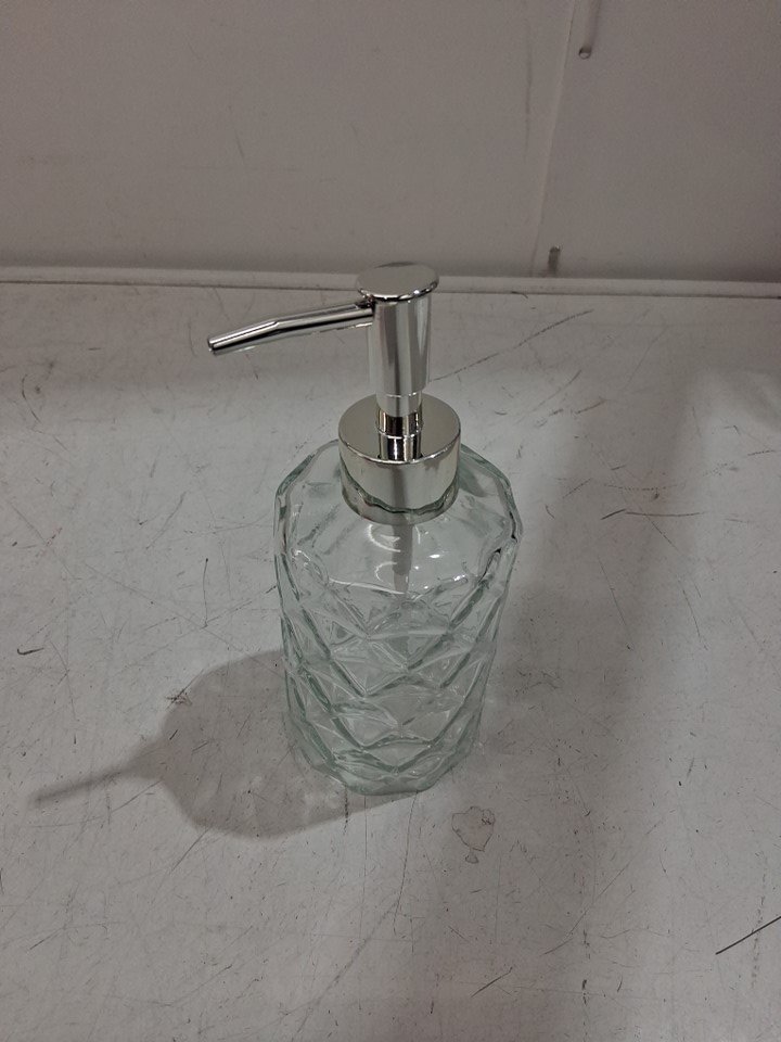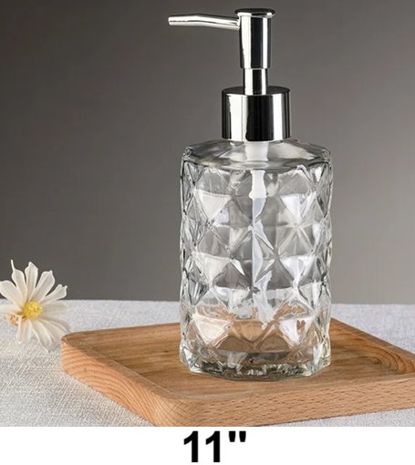 rhombus modern glass soap dispenser - 11'' - clear/silver