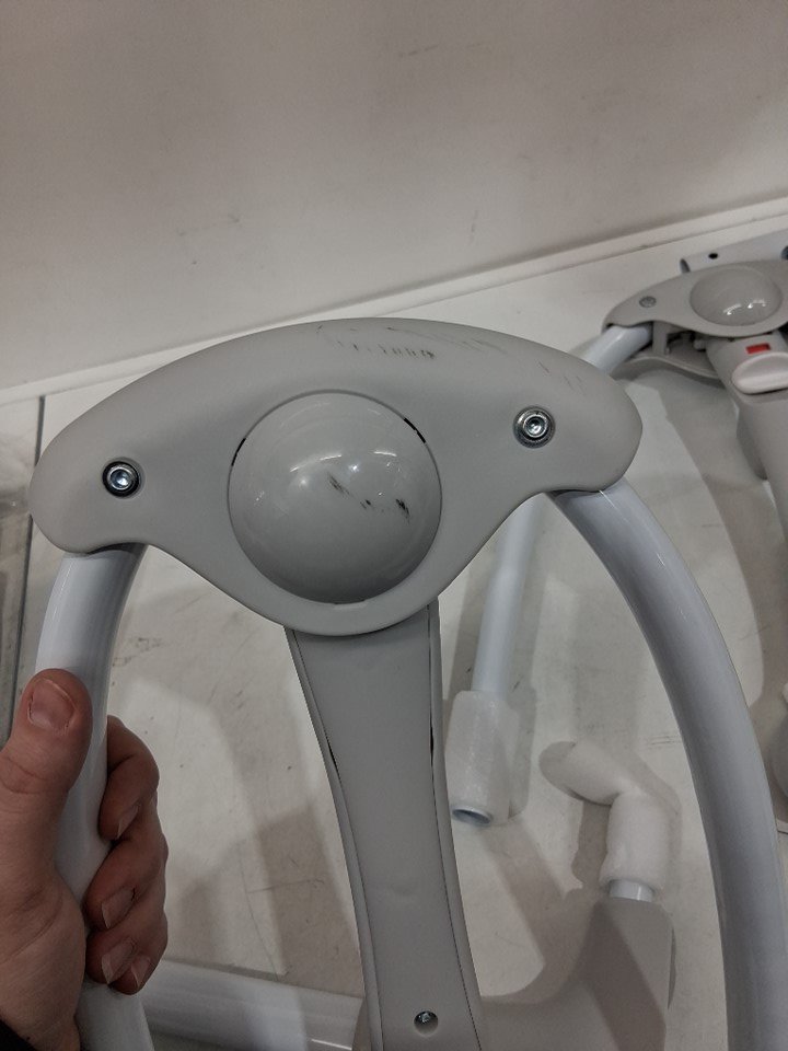 Item has mild black scuffs on surface of support piece. Item tested for power