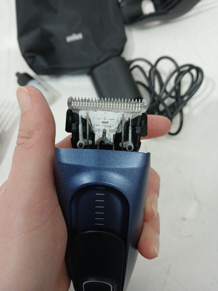 Has some hair under the blade and the combs appear to have some oil on it. Tested for power.