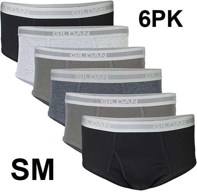 6PK MEN'S GILDAN CLASSIC TAG FREE BRIEFS - MED (32-34) - ASSORTED BLACK/GREY