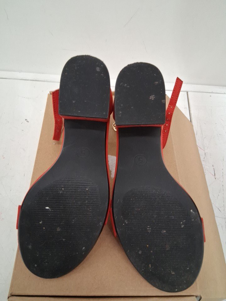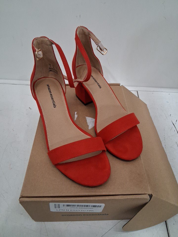 womens amazon essentials two strap heeled nola sandal - size 5 - poppy red