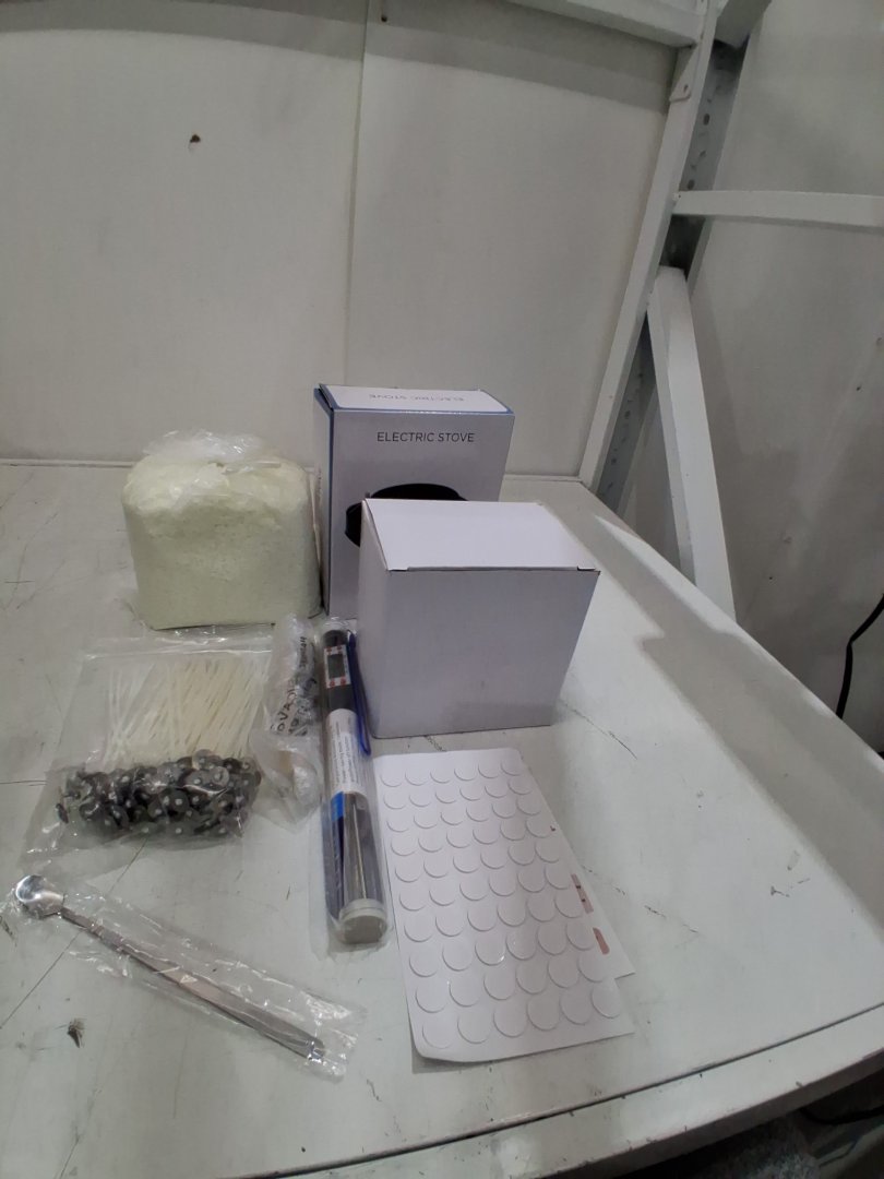 item contains: 2 lbs soy wax flakes 100 candle wicks 120 wick stickers 10 centering devices 1 stainless‑steel pouring pot 1 thermometer 1 stainless‑steel spoon 1 electric hot plate 1 instruction booklet