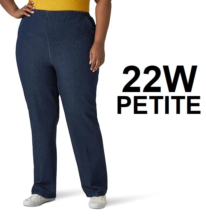 WOMENS' CHIC CLASSIC COLLECTION PLUS SIZE STRETCH ELASTIC WAIST PULL-ON PANTS - 22 wide petite - Stonewash Denim (style: 102cr66os)