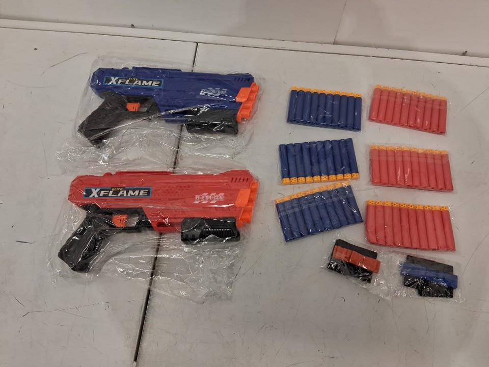 2pk Xflame Elite foldable stock dart guns with accessories - shoots 40ft - 40 DARTS - Multicolour