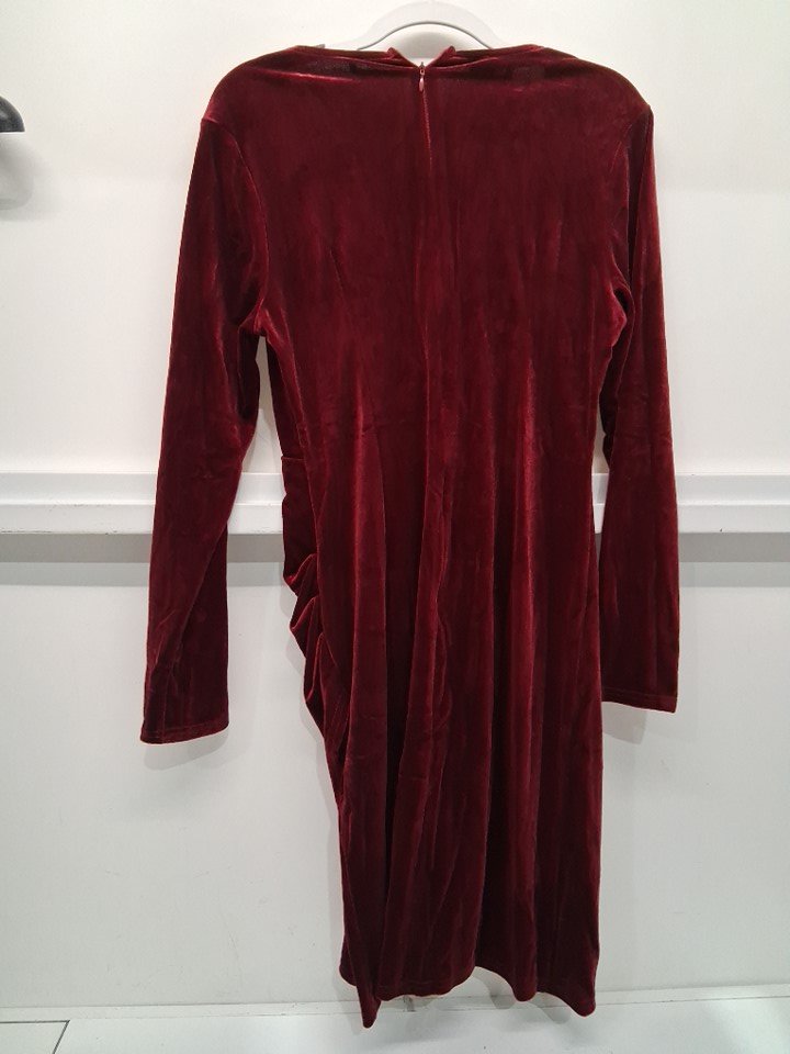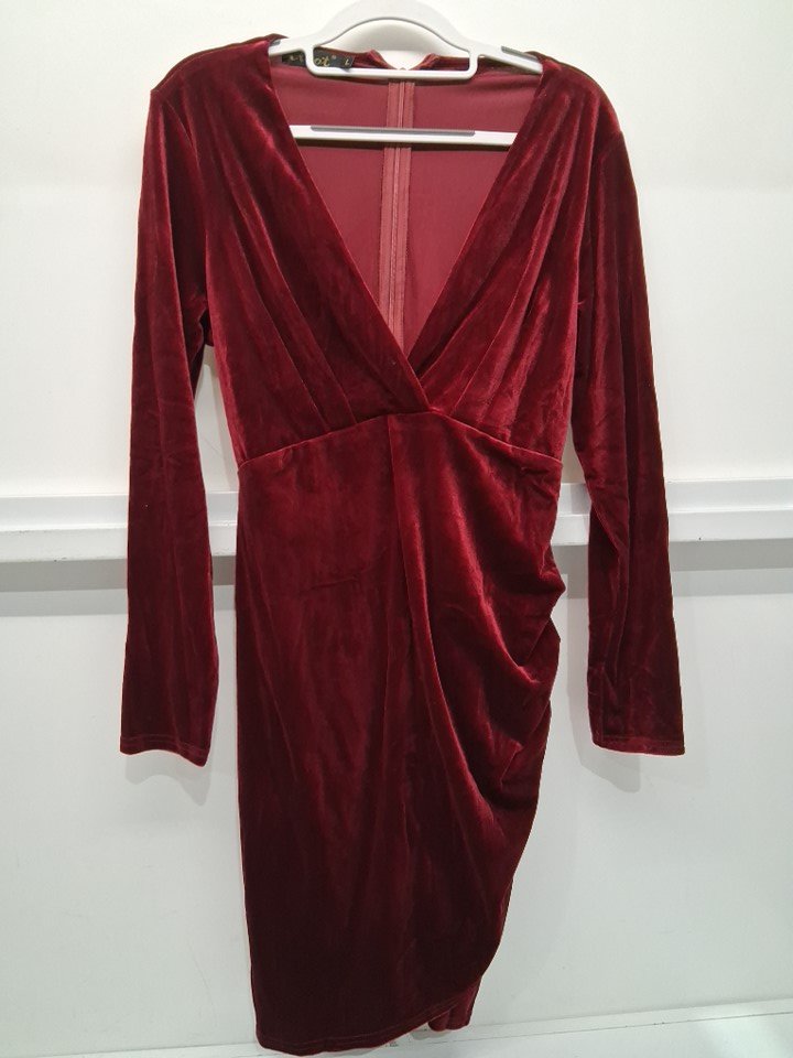 Women's Ihot v neck long sleeve velvet style dress - Large - Red