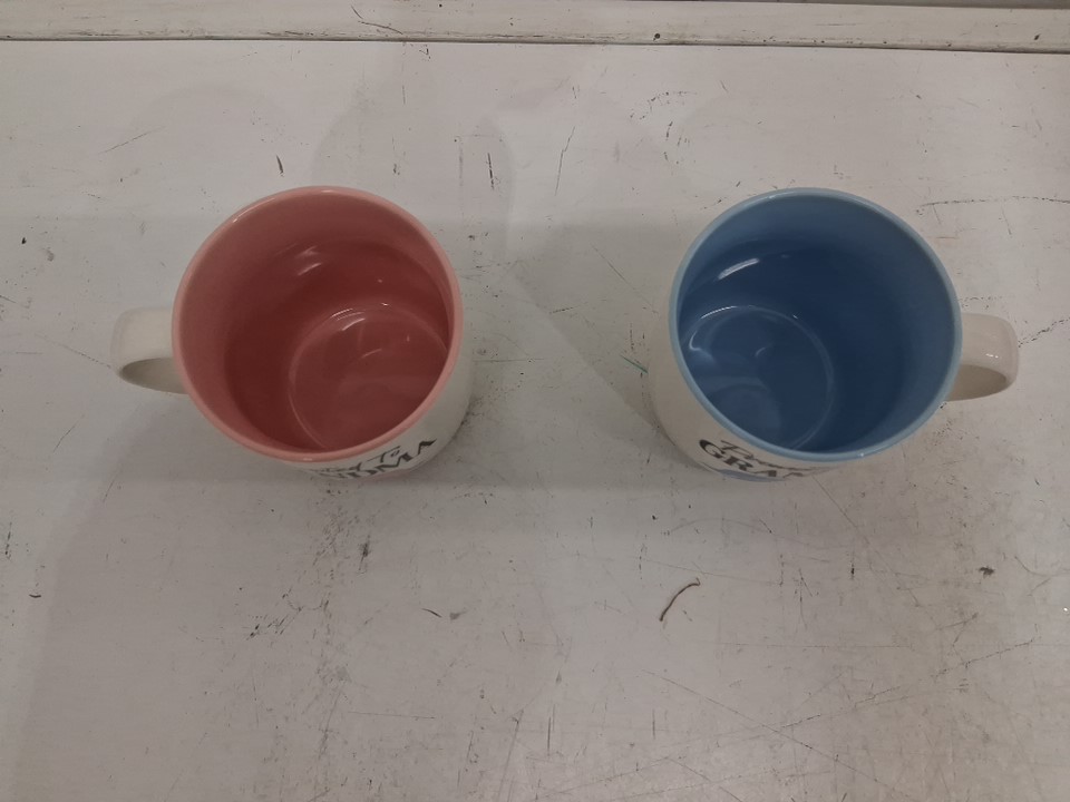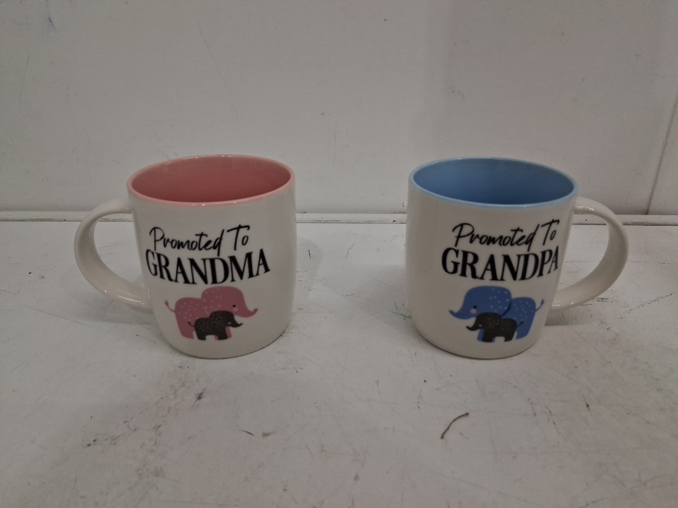 2PC Triple Gifffted Promoted to Grandparents Mugs - 13OZ - Pink/Blue/White