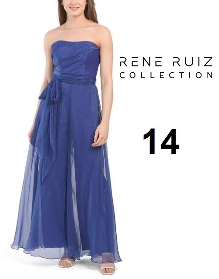 RENE BY RENE RUIZ Blue Strapless Tie Waist Flowy Jumpsuit - 14 - BLUE