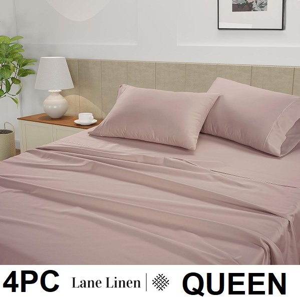 4PC lane linen deep Pocket cotton sheets set - queen - dusty rose