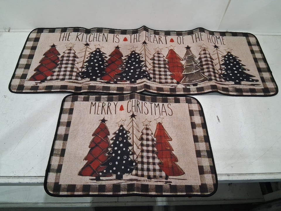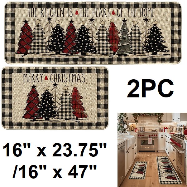 2pc artoid mode Buffalo Plaid Xmas Tree Merry Christmas Kitchen Mat Set - 16" x 23.75" / 16" x 47" - black/beige (model: ‎Kitchenmat-Rubber-Christmas-4373118-008)