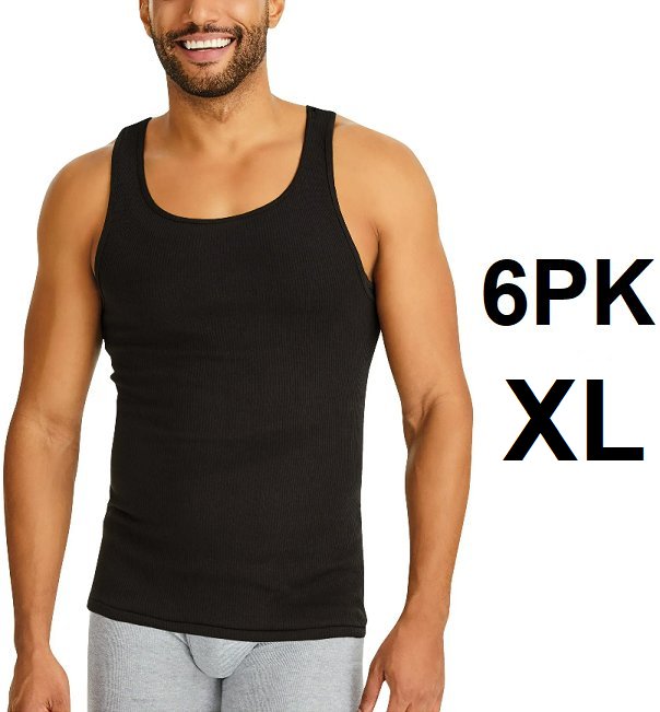 6PK MEN'S HANES COMFORTSOFT TAGLESS TANKS - extra large - BLACK