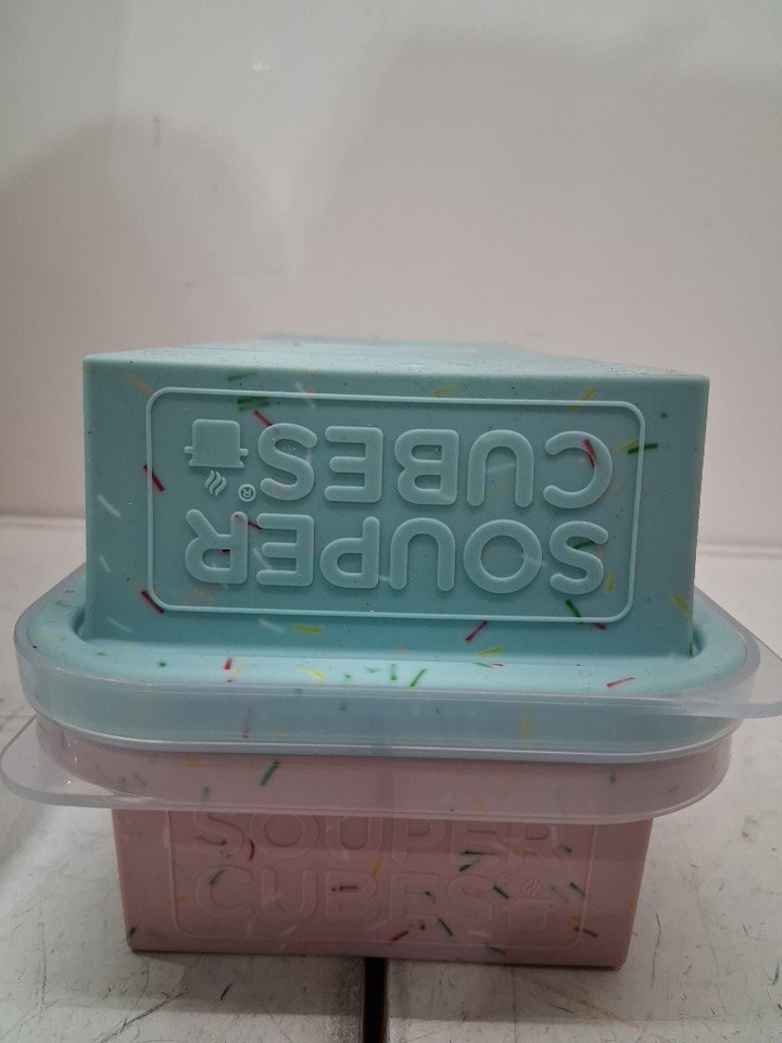 2PK SOUPER CUBES SILICONE FREEZER TRAY WITH LID - 1 CUP INSERTS - pink sprinkles / blue sprinkles