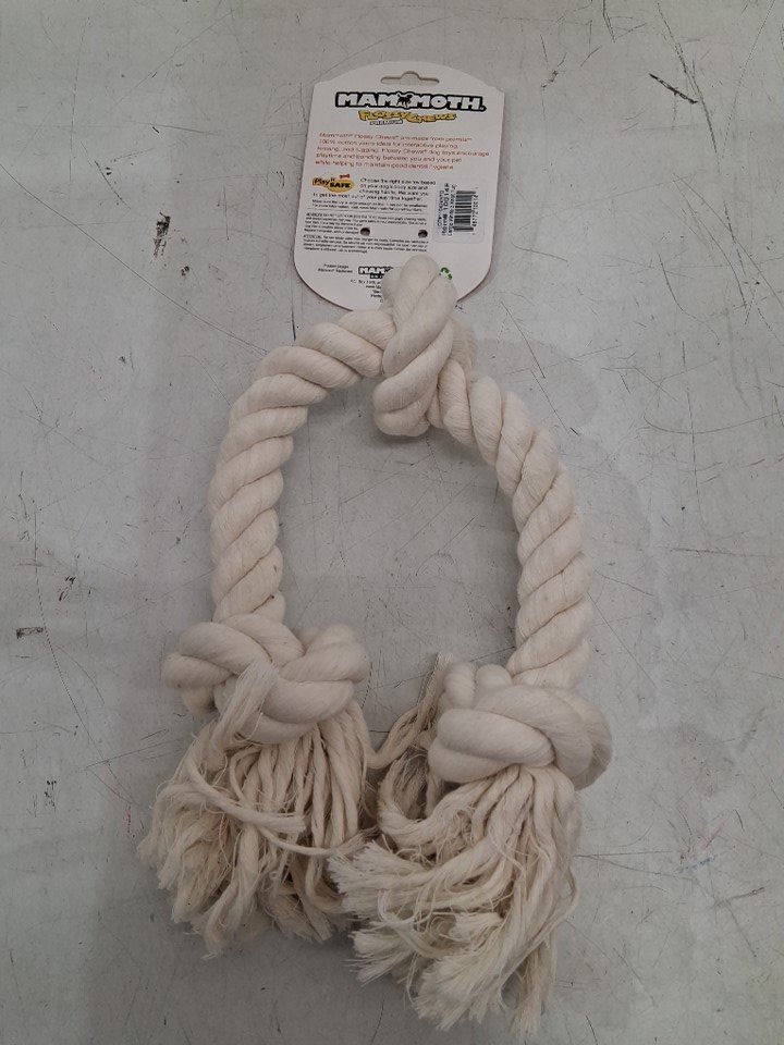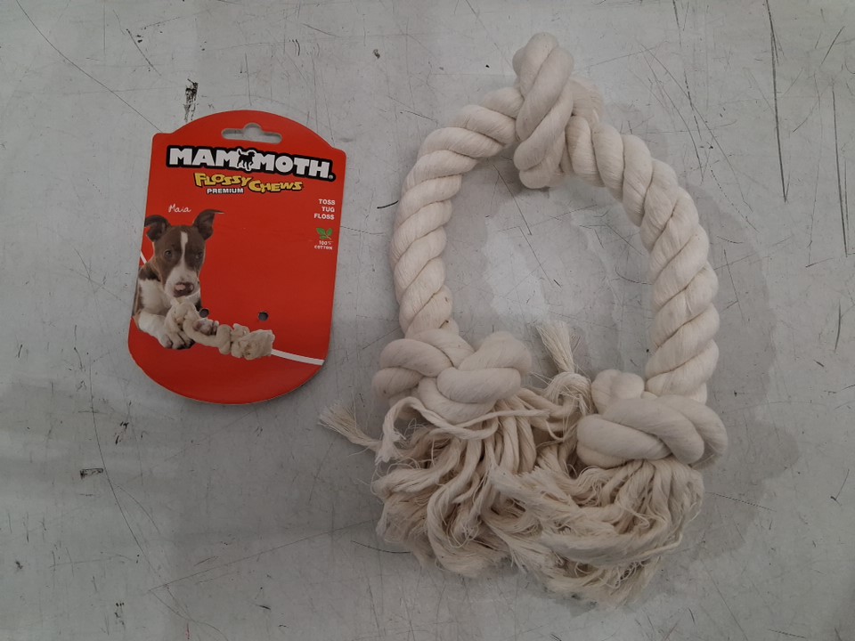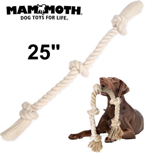 Mammoth Flossy Chews Premium Toss Tug Floss 3 Knot Rope - 25" Large - White (Model: 10014F)