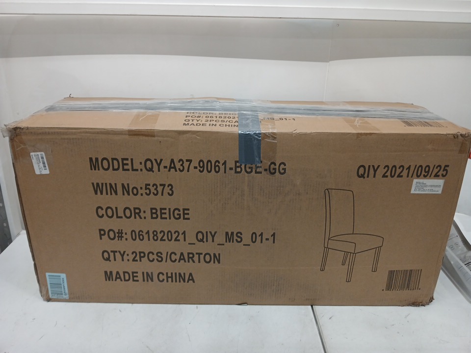 2PK Flash Furniture Greenwich Series Beige Fabric Upholstered Panel Back Mid-Century Parsons Dining Chair - BEIGE (MODEL: QY-A37-9061-BGE-GG)