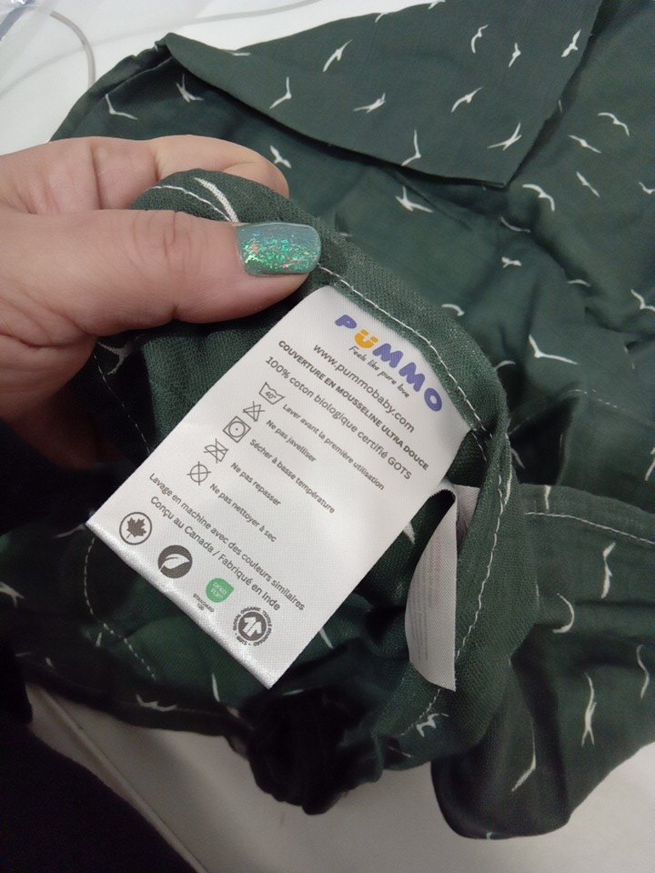PUMMO 100% Organic Cotton Muslin Swaddle Blanket - 47" x 47" - green birds
