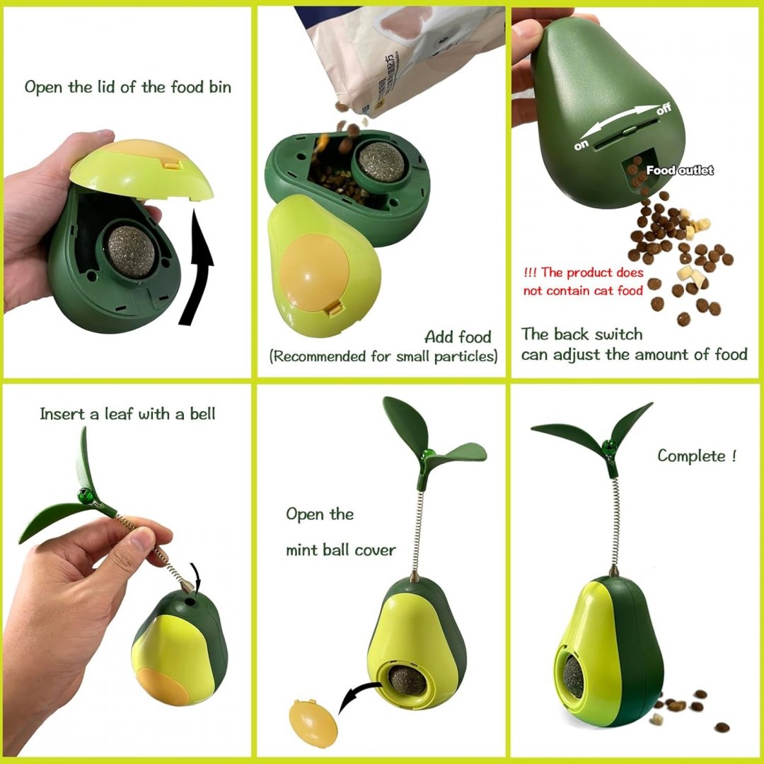 Interactive Avocado Cat Puzzle Feeder - 8.6" - GREEN