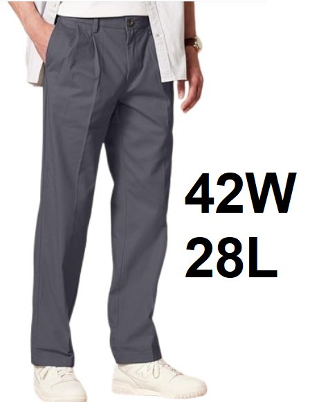 MENS AMAZON ESSENTIALS Classic Fit Wrinkle Resistant Flat Front Chino Pant - 42W x 28L - DARK GREY (style: F16AE60000_DNU)