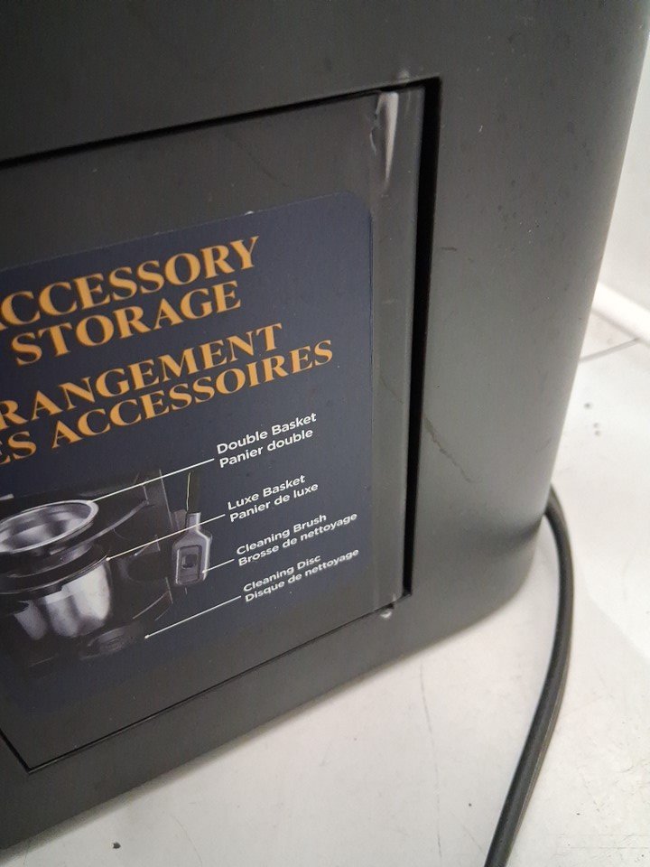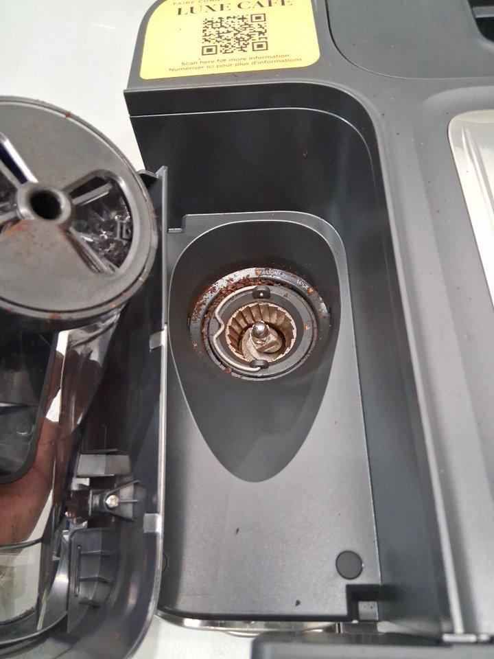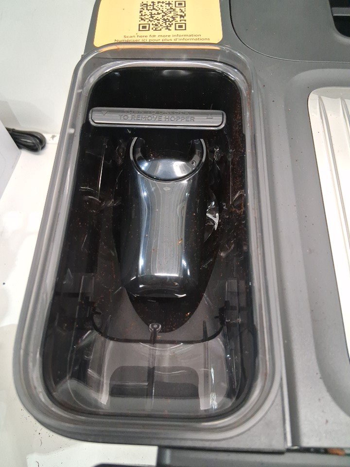 + The bean hopper lid is missing + + The side doors hinge is damaged but is still functional + + Tested for basic power only + + Residual coffee grinds +