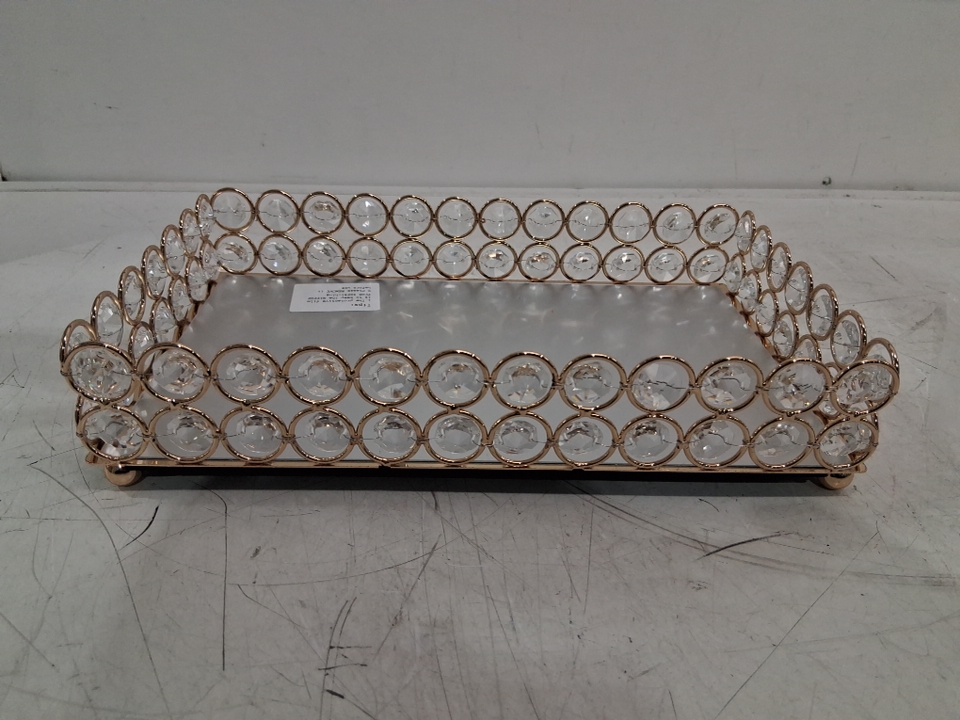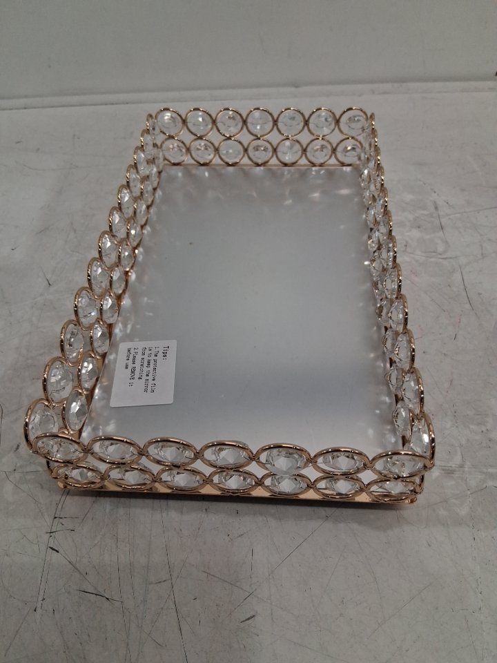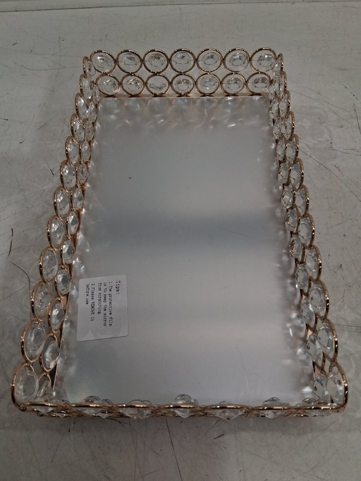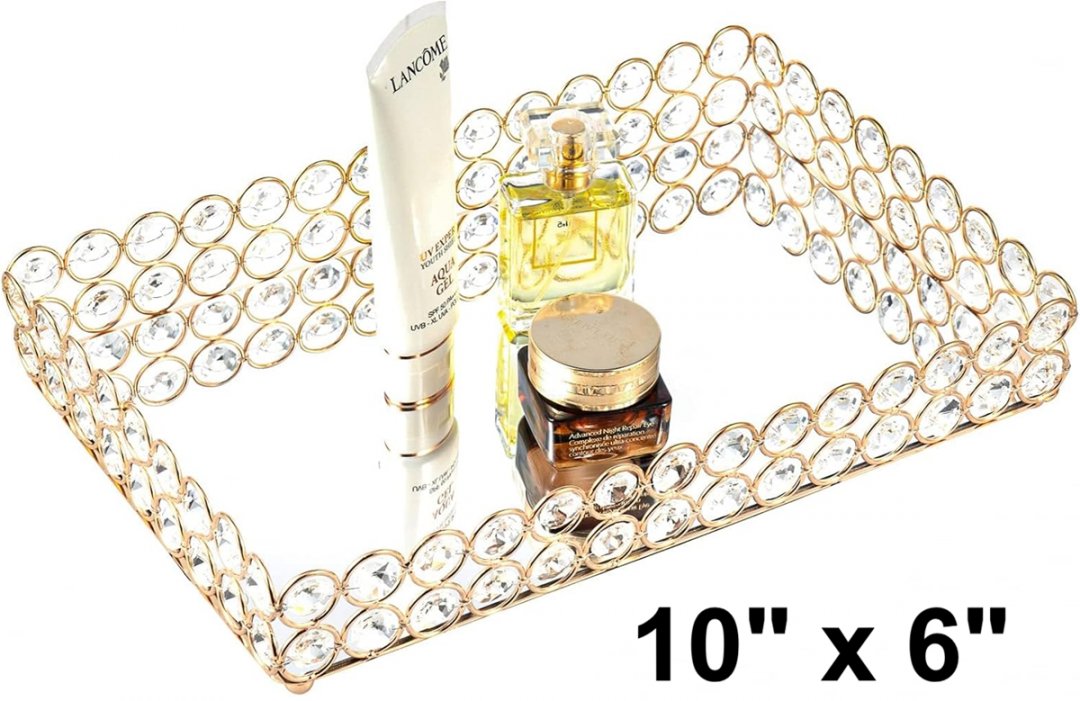 Feyarl Ornate Crystal Vanity Makeup Tray Organizer With Mirror Surface - 10" x 6" - Gold/Crystal