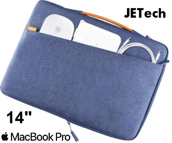 jetech padded waterproof case for 14" macbook pro - denim blue/orange